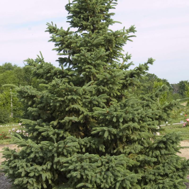 A dense, broadly pyramidal spruce with rich blue-green needles and excellent cold hardiness. Known for its strong branching, full habit, and adaptability, this rugged conifer makes an outstanding specimen, windbreak, or screen with reliable year-round structure.
