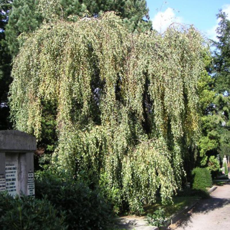 This graceful and uniquely shaped weeping tree with chalky white bark features shiny green foliage that shimmers in the wind. 'Youngii' also provides a lovely golden yellow color in autumn.