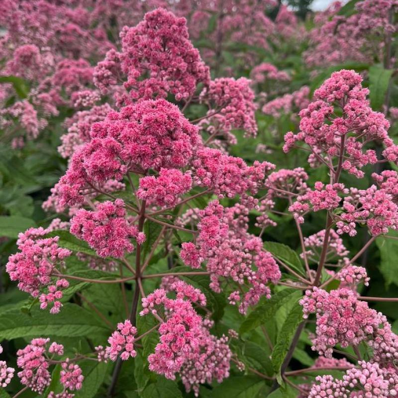 This compact Joe-Pye Weed delivers bold color with dense clusters of vivid pink blooms that attract pollinators in late summer. Strong stems and lush green foliage make 'Jojo' an easy-care focal point for moist, sunny spots.
