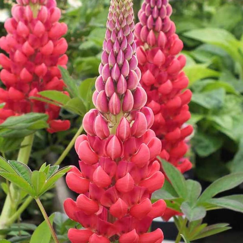 Striking red spires with purple tips bloom in early summer. Adds bold vertical interest to borders and cottage gardens. Deer resistant and loved by pollinators.