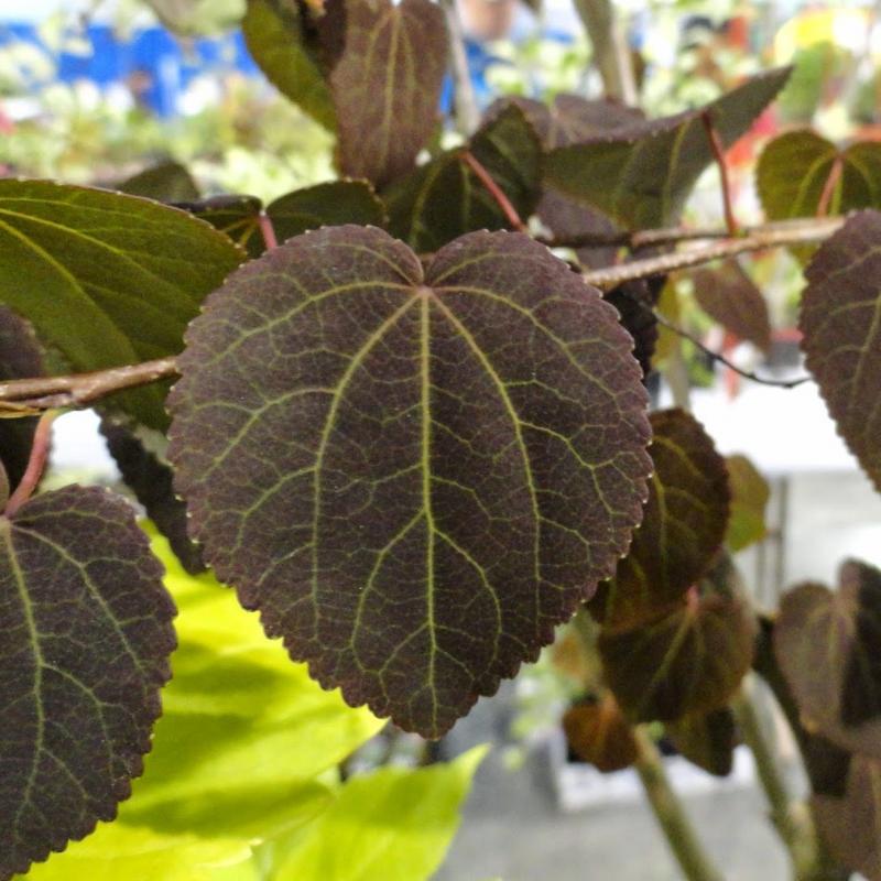 A compact katsura selection prized for its rich purple-red spring foliage that deepens in summer and transforms to apricot-gold in fall. Leaves emit a sweet, cotton candy-like scent in autumn. Upright, columnar habit makes it perfect for smaller spaces.