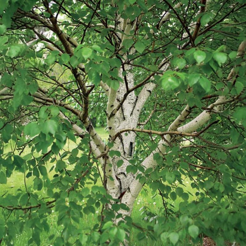 A graceful birch prized for its smooth, satiny white bark that brightens the landscape year-round. Its dark green, ovate leaves turn golden yellow in fall. With a strong central leader and excellent pest resistance, this variety is a striking, low-maintenance alternative to paper birch.
