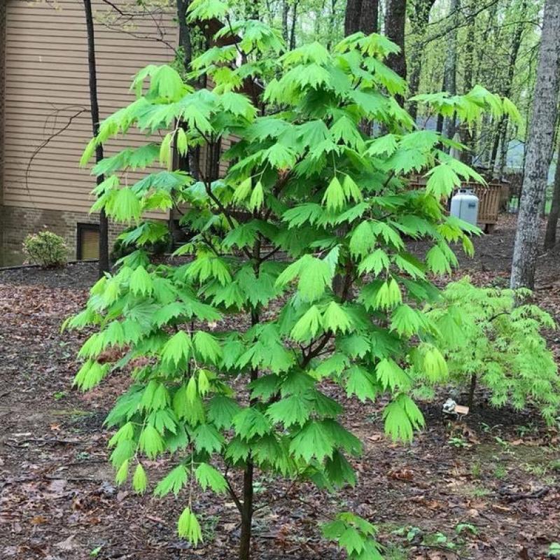 A striking small tree with broad, rounded leaves that emerge a fresh, glowing green in spring, mature to rich green in summer, and blaze with brilliant orange, red, and gold tones in fall. Graceful, layered branching provides an elegant presence in the landscape.