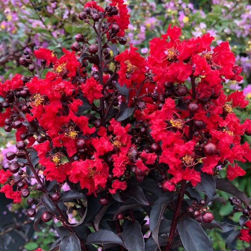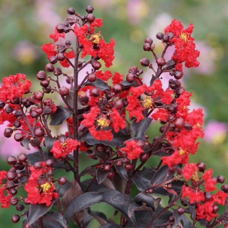 Do you live for the drama? Looking for a plant that commands the spotlight but is still easy to grow? Center Stage Red crape myrtle is just the plant to fill the role! With its deep black foliage and glowing red flowers, it truly will command center stage in your landscape. We spent many years developing and evaluating dark-leaf crape myrtles like this to ensure that our selection would be vigorous and resist the diseases that often plague the species, so you'll enjoy clean, glossy foliage all season long. It naturally grows with a narrow, space-saving habit that eliminates the need to prune and opens up a range of landscaping possibilities.