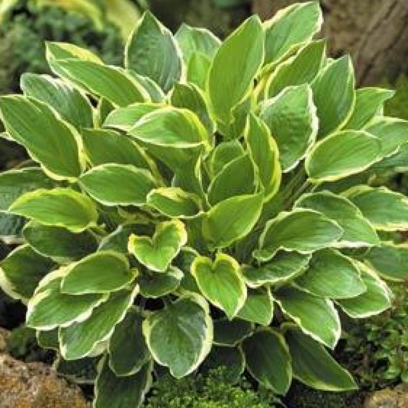 A former Hosta of the Year winner, this variety will remain small while producing glossy, pointed, medium green leaves with white margins and sweetly fragrant white flowers in July.