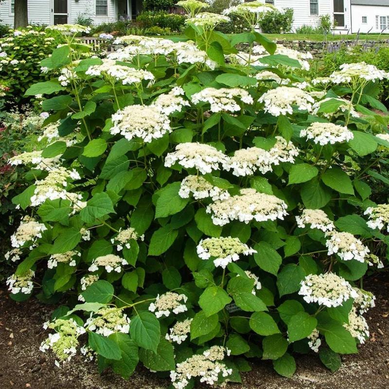 A standout native lacecap hydrangea with exceptionally large, flat white flower heads and strong, dark stems. Loved by pollinators, it’s ideal for naturalistic settings, rain gardens, and woodland edges.