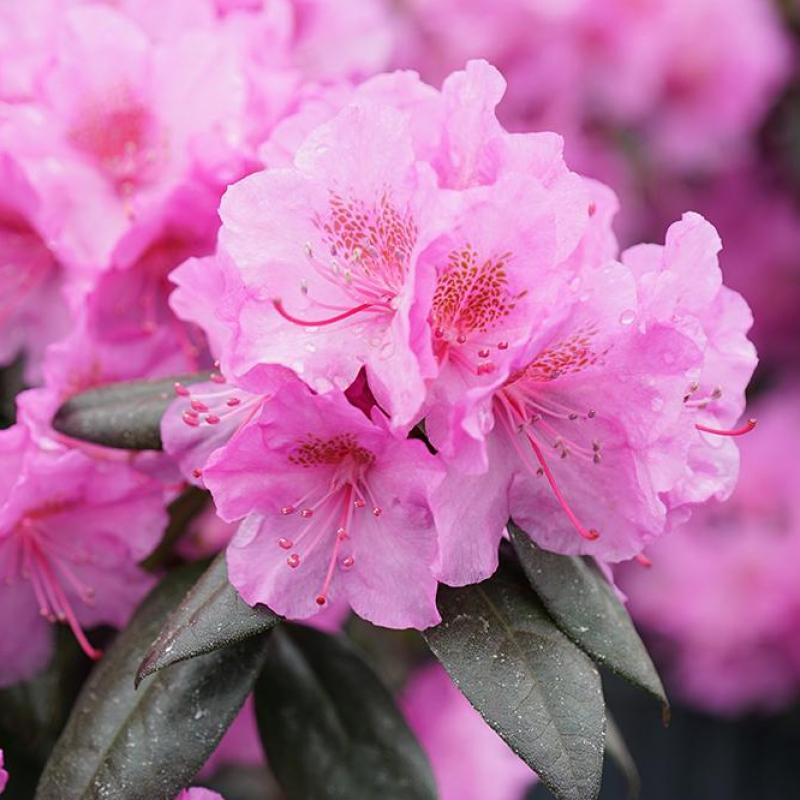 A striking evergreen rhododendron featuring vivid rose-pink flowers set against exceptionally dark, nearly black foliage. Blooming in mid to late spring, ‘Black Hat’ delivers bold color contrast and year-round interest, making it an excellent choice for foundation plantings, woodland gardens, and shaded borders.