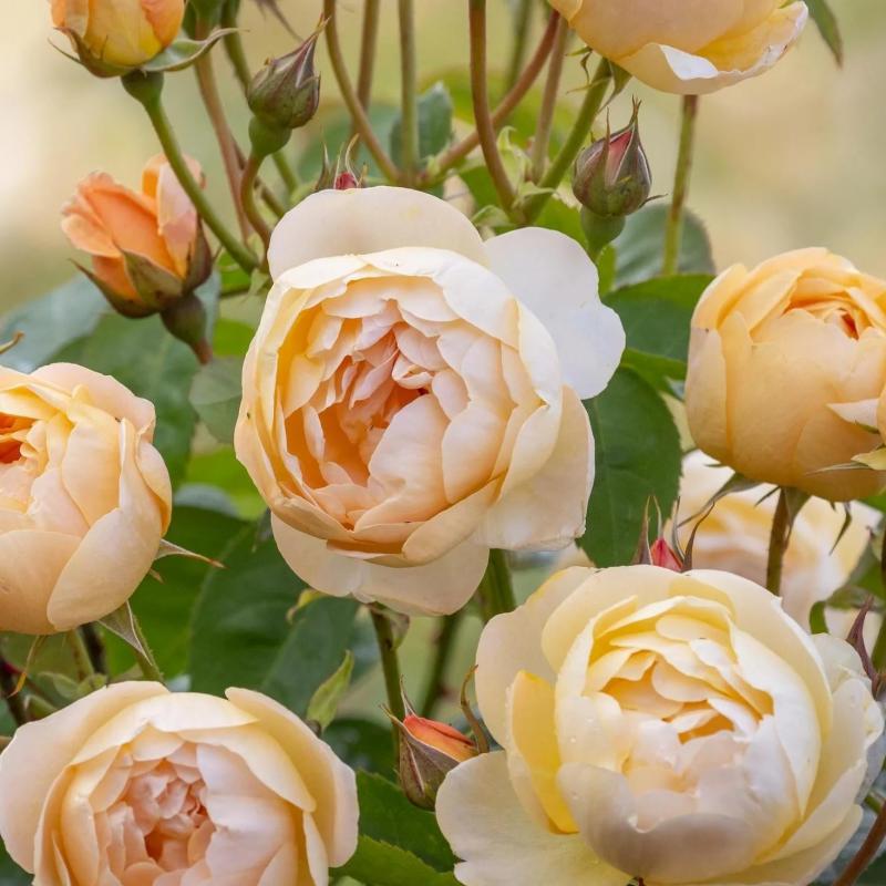 A stunning English rose with cupped, apricot-peach blooms that exude a light fruity fragrance. ‘Dannahue’ flowers repeatedly through the season, combining classic old-fashioned beauty with modern disease resistance. A perfect choice for cottage gardens and elegant borders.