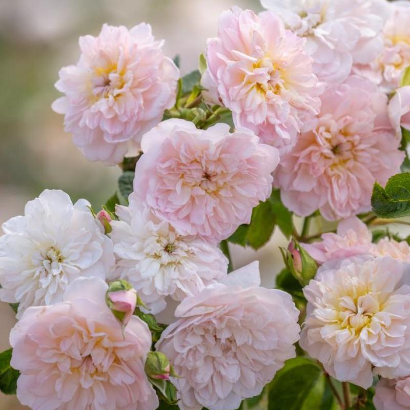 This majestic rose features clusters of large, crisp apple blossom pink rosettes that gradually fade to a delicate blush white. It boasts a strong, sweet fragrance with hints of lemon sherbet and Old Rose. Exceptionally healthy and versatile, it grows into a shapely, commanding shrub.