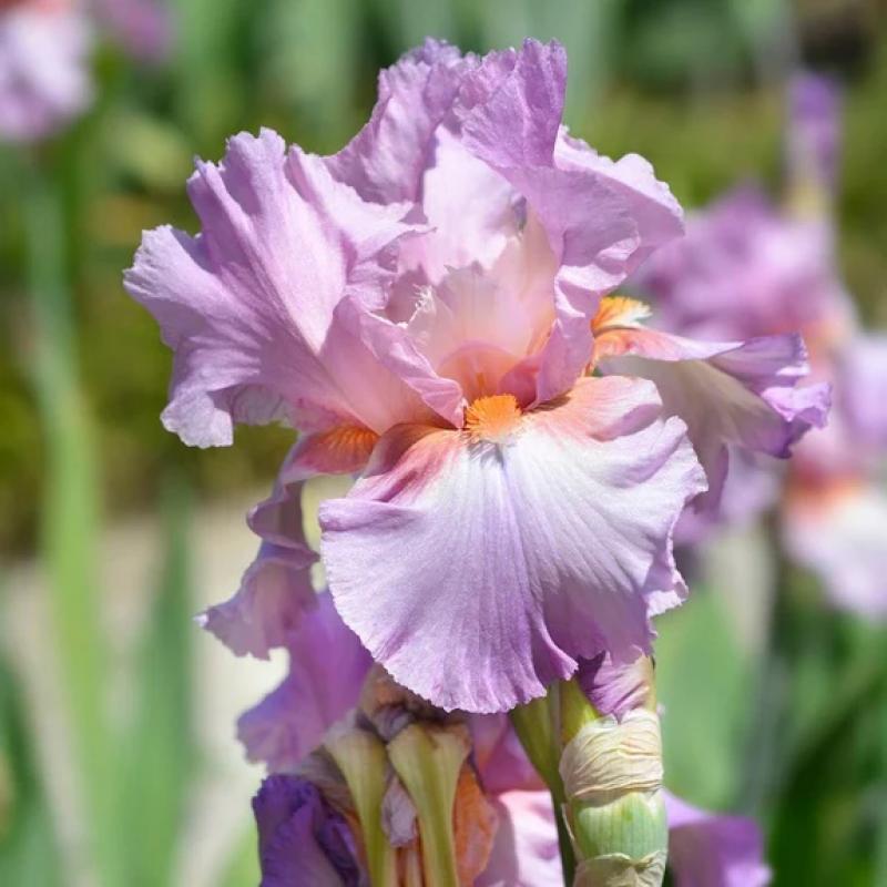 Unique mauve-purple blooms, highlighted by salmon accents and bold orange beards. This reblooming beauty thrives in sunny locations, offering vibrant color from late spring to early summer. Perfect for borders, mass plantings, or as striking cut flowers.