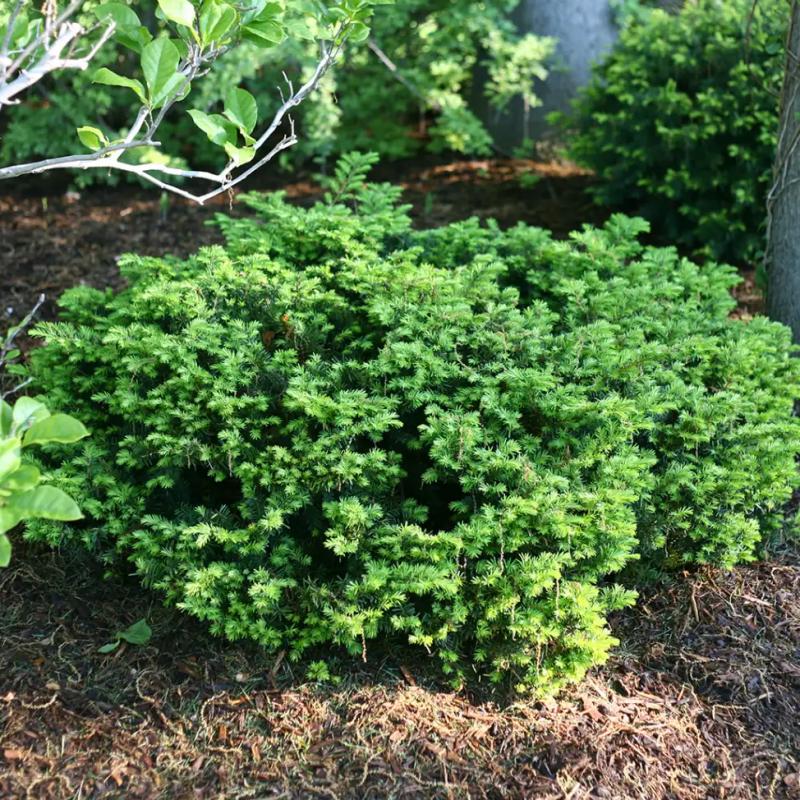 A hardy, low-growing evergreen shrub with a dense, spreading habit. Dark green needles provide year-round color and texture, making it an excellent choice for foundation plantings, mass plantings, or borders. Very tolerant of pruning and adaptable to a wide range of conditions, including shade.