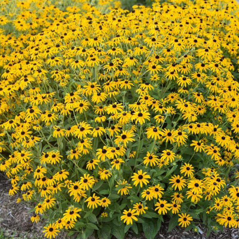 A new treasure to have your garden glittering with golden color! Large golden yellow star-shaped flowers completely cover the habit with well-branched stems prolonging bloom. This vigorous selection abounds not only with flowers but foliage as well. A robust clump of foliage with large leaves ensures longevity in the landscape. Crucially, the leaves are highly resistant to Septoria leaf spot with no damage through six years of trials.