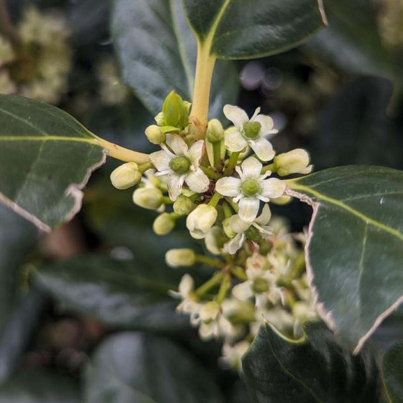 This vigorous hybrid holly offers year-round interest with dense, glossy, dark green foliage and bright red berries in winter (when pollinated). Naturally pyramidal and low-maintenance, it's ideal for privacy screens, hedges, or specimen planting.
