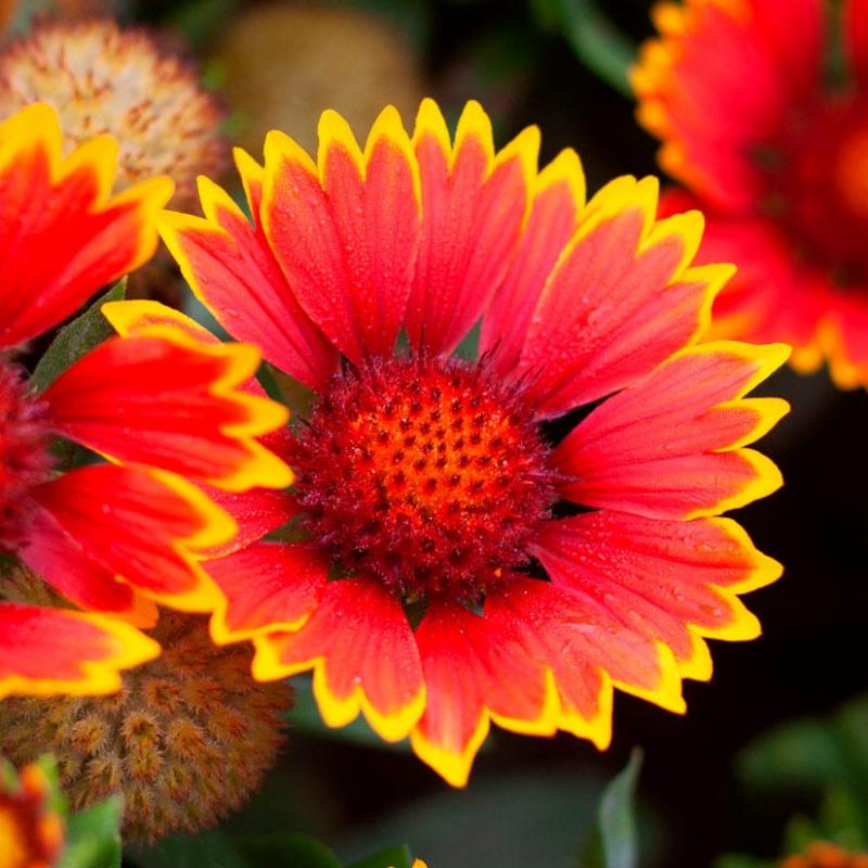 ‘Orange & Red’ is a vibrant, long-blooming blanket flower featuring fiery red petals tipped in golden orange around a richly textured central disk. Tough, drought tolerant, and free flowering, it thrives in sunny borders and pollinator gardens, providing continuous color from early summer into fall.