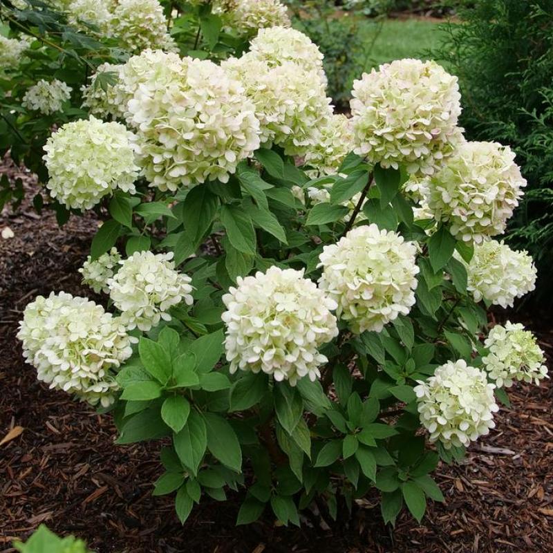 A show-stopping hydrangea with massive, dense flower heads that resemble garden “powerballs.” Blooms open creamy white in summer, then mature to shades of blush pink as the season progresses. Strong stems hold the heavy blooms upright, making this variety excellent for fresh or dried arrangements. Compact and reliable, it brings bold presence to any landscape.