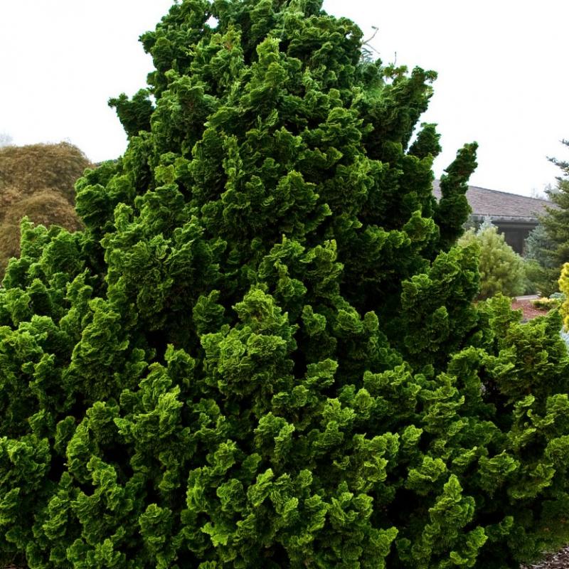 This marvelous compact evergreen sports deep green, wavy foliage and a rounded to mounding habit that will provide excellent textural interest all season long.
