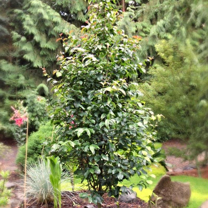 A striking columnar selection of Persian Ironwood with glossy green foliage that emerges with a purple flush in spring, holds rich summer color, and turns fiery shades of red, orange, and yellow in fall. Compact and upright, it’s ideal for small gardens and narrow spaces.