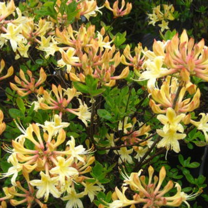 A stunning deciduous azalea that bursts with fragrant, creamy-yellow flowers in late spring, often flushed with peach-pink tones. Adds soft color and sweet fragrance to borders and woodland gardens.