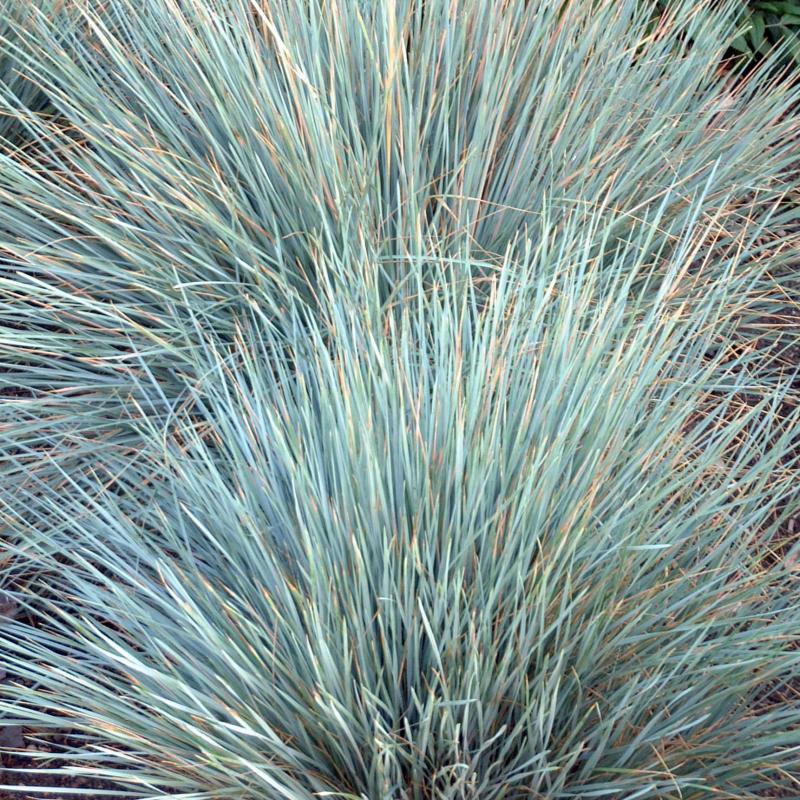 The thin, electric blue-gray blades of this variety have aqua undertones and form upright, rounded clumps that sport tan tassels in late July well above the mass of foliage. This semi-evergreen variety is great for fall and early winter pleasure.