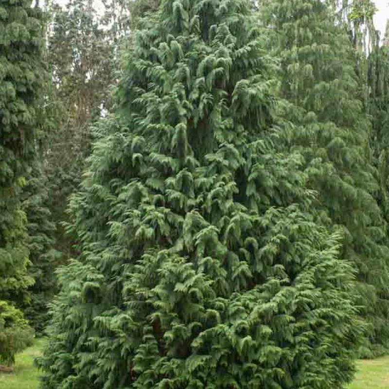 A graceful evergreen conifer with striking blue-green foliage and a strong pyramidal form. Its pendulous branchlets create a stately, elegant silhouette in the landscape. Excellent as a specimen tree or for screening.