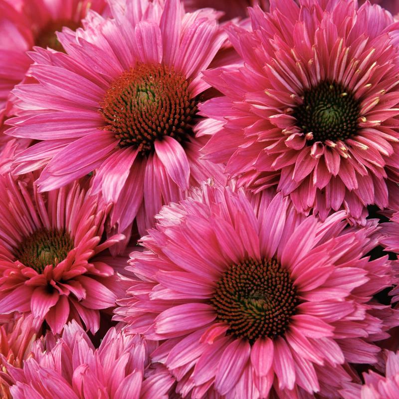 A bold coneflower with vivid fuchsia-pink blooms, some semi-double, surrounding rich central cones. Long blooming and compact, it delivers nonstop summer color to borders, containers, and pollinator gardens.