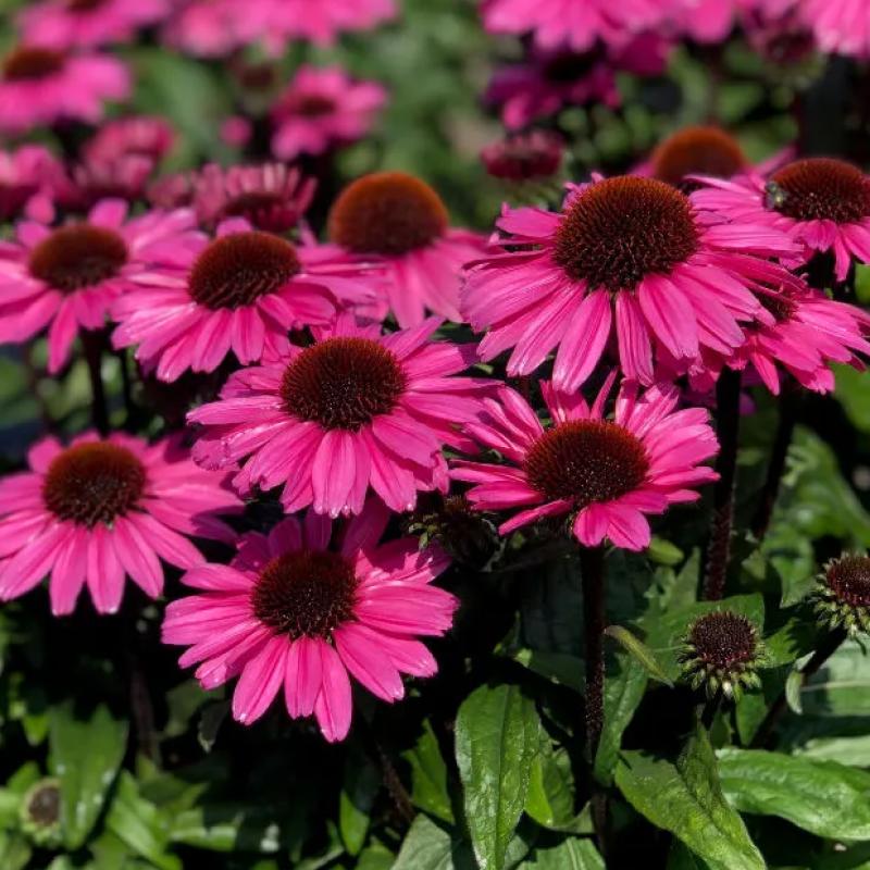 A compact, floriferous coneflower covered in rich purple-pink blooms with dark cones from summer into fall. Strong stems and vibrant color make it a standout in sunny borders, containers, and pollinator gardens.