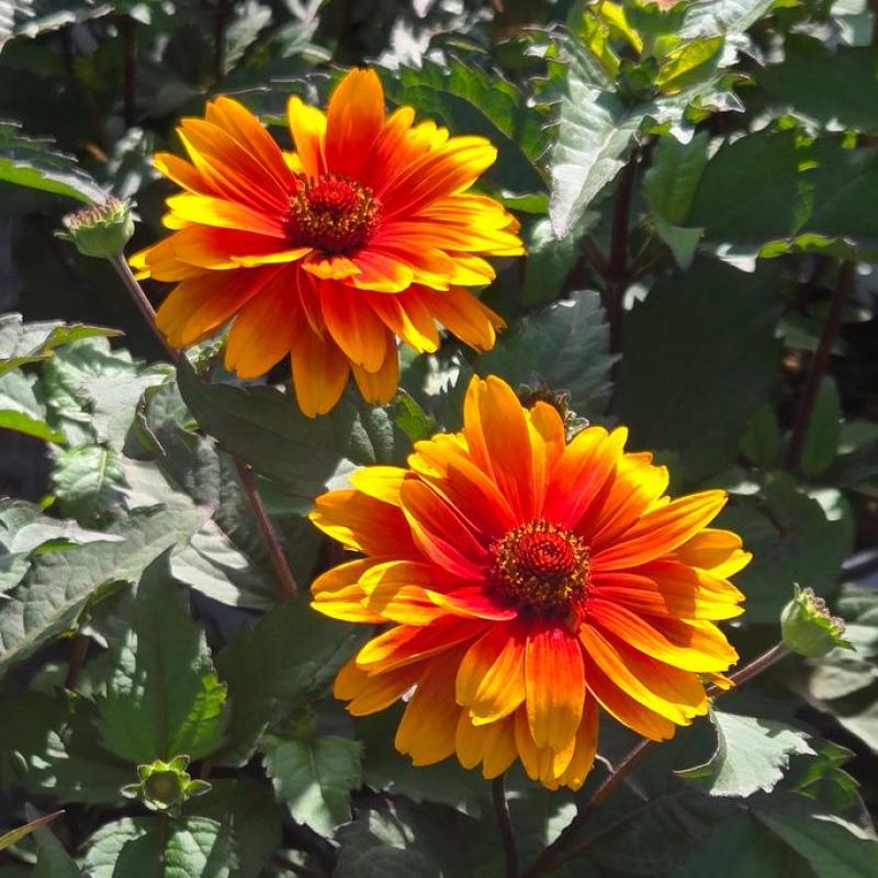 A striking selection of false sunflower with bold golden-yellow blooms surrounding rich red-orange centers. Blooming from summer into fall, it provides long-lasting color and is highly attractive to pollinators. Its sturdy stems and vibrant flowers also make it excellent for cutting gardens.