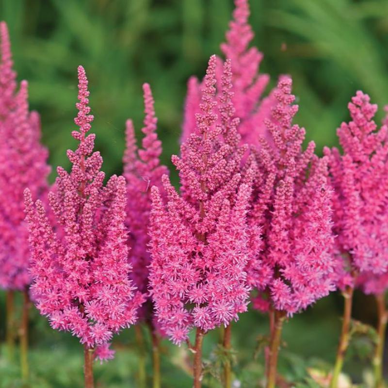 A romantic favorite with feathery, rose-pink plumes held above lush, deep green foliage. This compact Astilbe adds color and texture to shady spots and performs beautifully in moist garden beds or along water features.