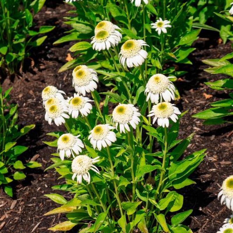 A unique twist on the classic coneflower, 'Vanilla Drip' features creamy white, double blooms with greenish-yellow centers. Long-lasting flowers attract pollinators and add soft elegance to summer gardens. Sturdy, upright growth makes it great for borders and cut flower arrangements.