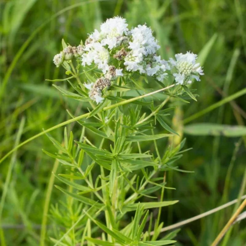 A highly aromatic native mint with narrow, lance-like foliage and clusters of tiny white flowers that attract a remarkable range of pollinators. An easy, durable plant for naturalistic plantings, meadows, and ecological gardens.