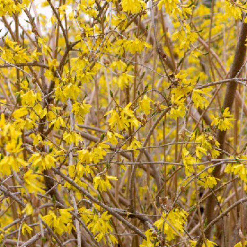 An upright plant, 'Northern Gold' produces a mass of golden yellow flowers in early spring that appear all the way to the top of its interesting yellow-gray branches before the deep green leaves emerge.