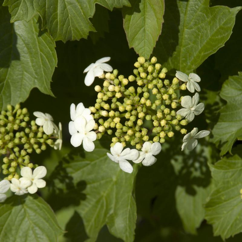 A compact selection with single, white, "lace-cap" flowers in late May and June, dark green maple-like leaves that turn red in fall, and clusters of bright red berries the birds love combine to make this a classic garden staple!
