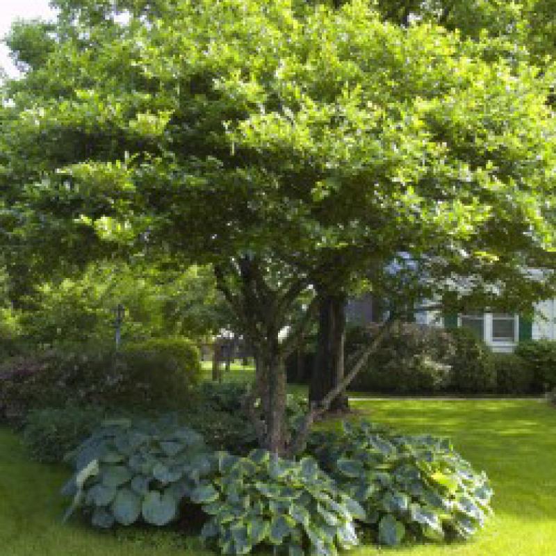 Heavily laden with clusters of dainty white flowers in June and very dark, oval, thickly textured leaves, this plant has a wide, rounded, horizontal branching habit. The flowers are followed by persistent burgundy-red fruit in the fall.
