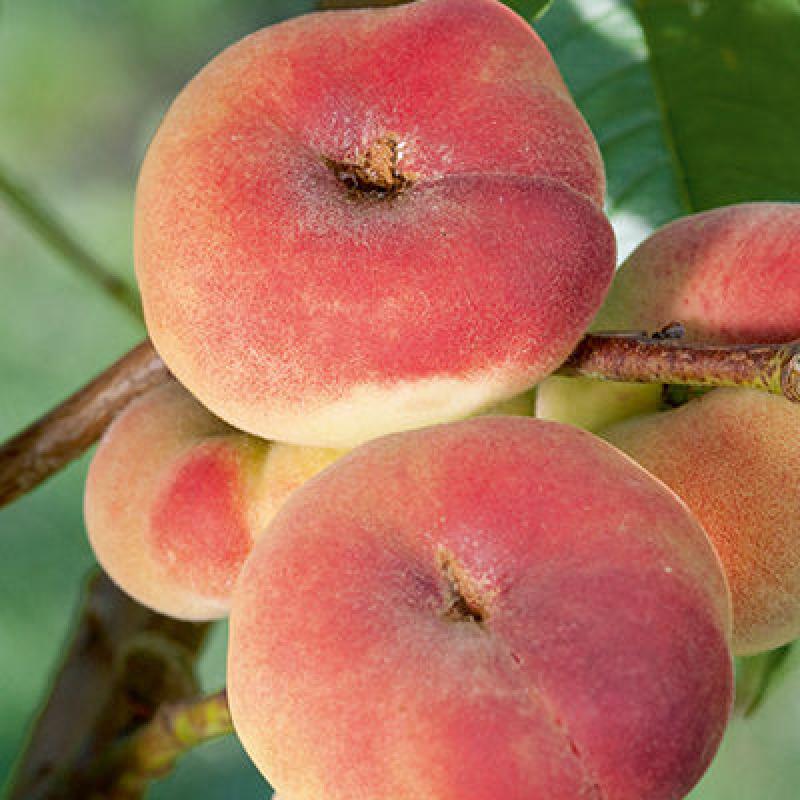 A unique flat “donut” peach with white flesh and an exceptionally sweet, low-acid flavor. Juicy and aromatic, it is excellent for fresh eating and produces reliable summer harvests.