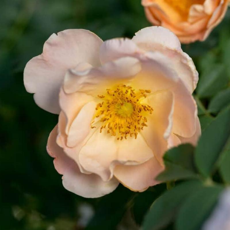 An exceptionally hardy rose with soft apricot-peach blooms and bright golden centers. This vigorous, disease-resistant rose blooms heavily in early summer with repeat flowering, making it ideal for cold-climate landscapes.