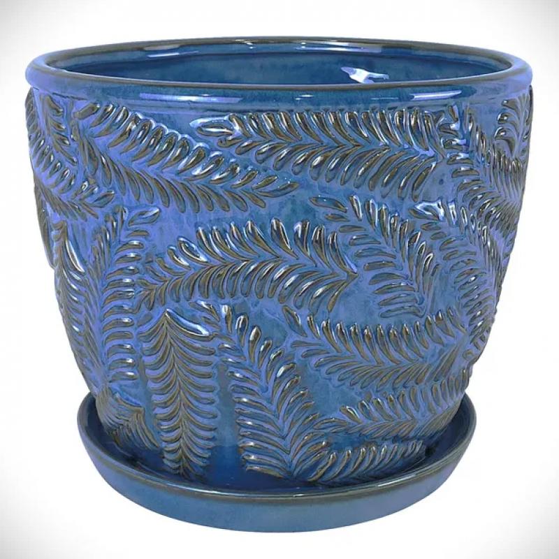 Planter - Beach Fern Blue Yonder with Saucer 5" x 4.75"