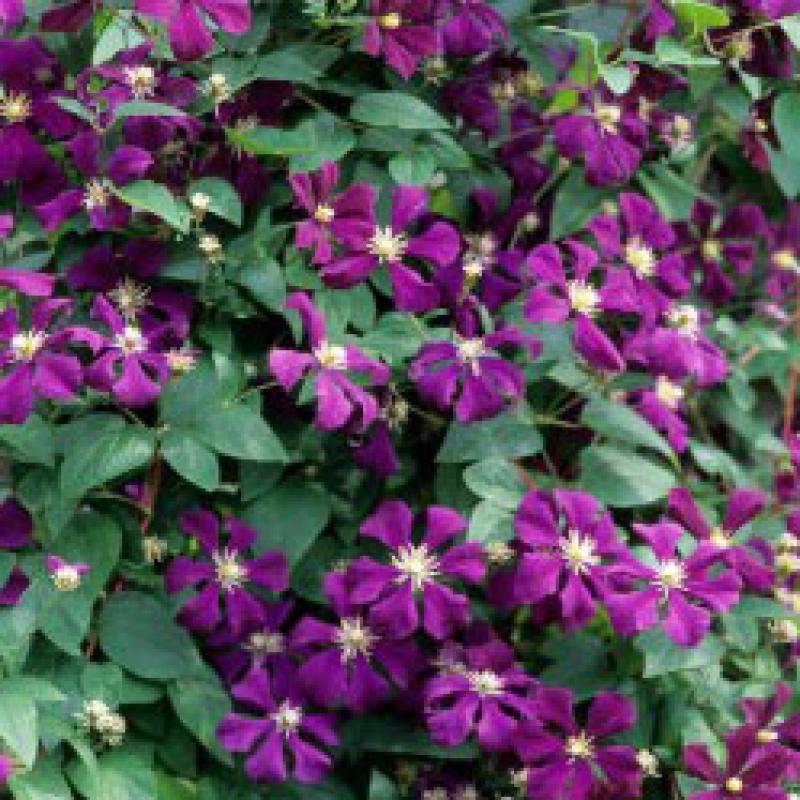 Don't be fooled by the smaller flowers of this variety - this is one of the best bloomers. From July to September the deep purple, 3-4" flowers will be so floriferous they will nearly obscure the foliage! (Pruning Group 3)