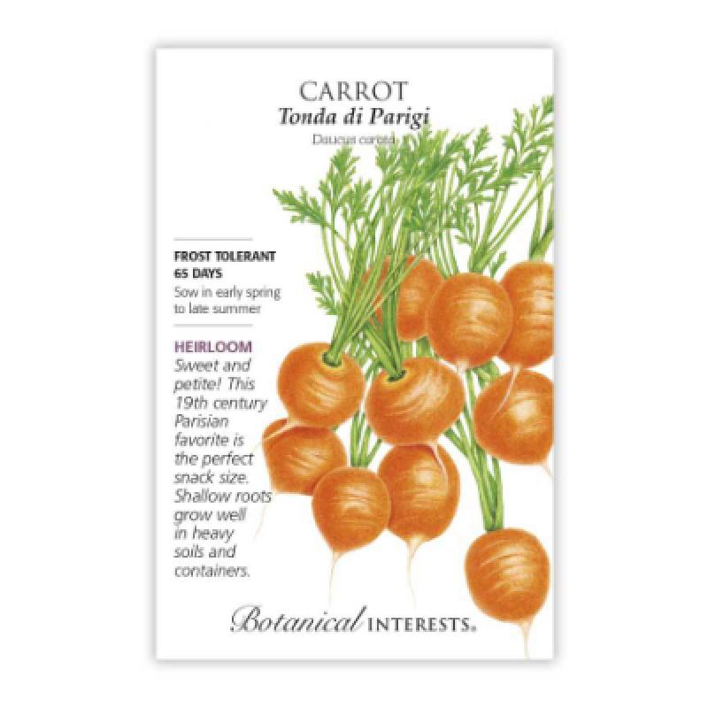 Tonda di Parigi is a deep orange, round, tender carrot with sweet flavor. Sow close together so you can pull them out in bunches, and harvest at mature 1½" size.