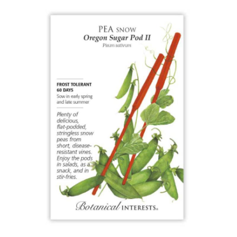Homegrown peas taste so much better than store bought! 'Oregon Sugar Pod II' produces a huge number of 4" delicious pods that are harvested and eaten when the pods are flat, before the seeds form. Short, 28" vines are easy to manage.