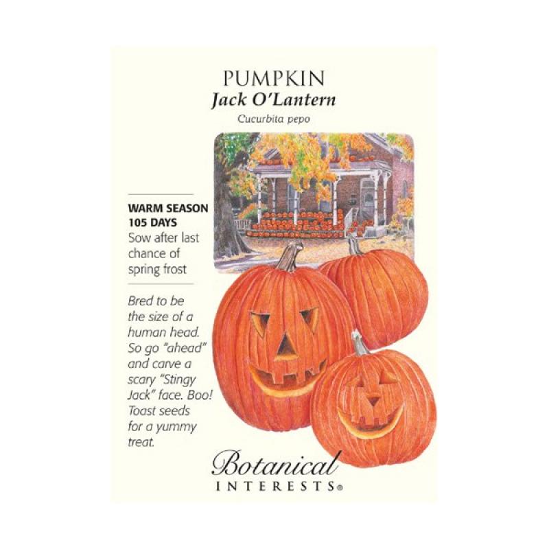 A superb pumpkin for carving! 10" tall, 10" diameter; 10 -18 pounds; stores for months. See inside of packet for scrumptious pumpkin seed recipe, and read about the Irish myth where Jack O’ Lantern got its name!