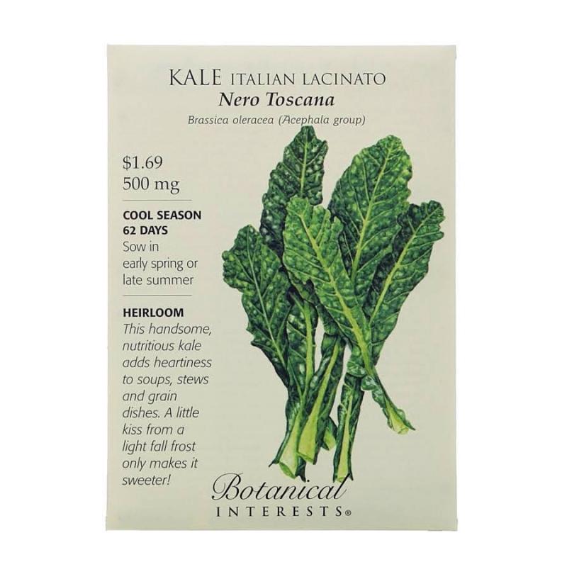 Also known as dinosaur kale, black Tuscan kale, black cabbage, and black palm. Vigorous dark green to black leaves that are traditionally used in soups and stews, or sautéed with olive oil & garlic and tossed with pasta. Delizioso!