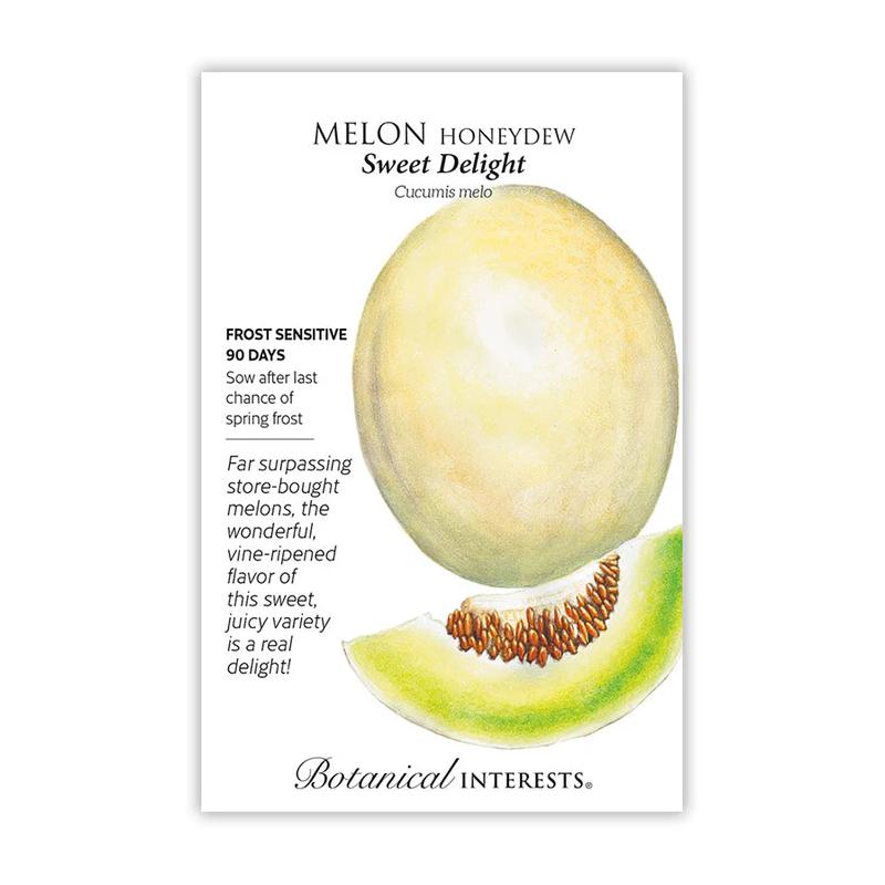 Melons are so easy to grow from seed! One of the reasons honeydew has not been popular in this country is the cardboard-like taste you get from grocery store honeydew melons. Vine-ripened Sweet Delight has unbelievably sweet, almost winelike flavor.