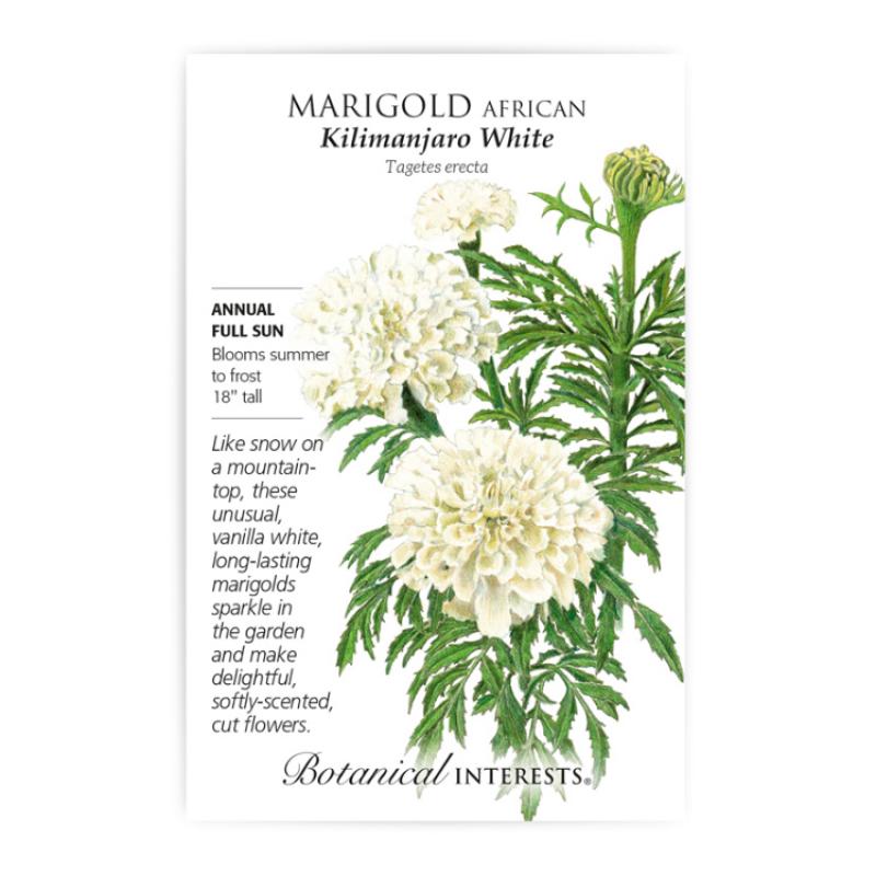 It took 21 years and thousands of dollars to develop a white marigold that made its debut in 1975. By growing 'Kilimanjaro White', you become a part of the horticultural history and determination that led this seed to your very garden.