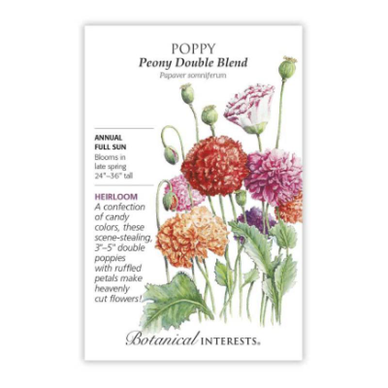 Jazz up your front walkway border with the ruffled explosion of color of peony poppies! These fully double, 3" - 5", colorful flowers with soft, blue-green foliage are easy to grow, and will reward you with a bounty of blooms for cut flowers.