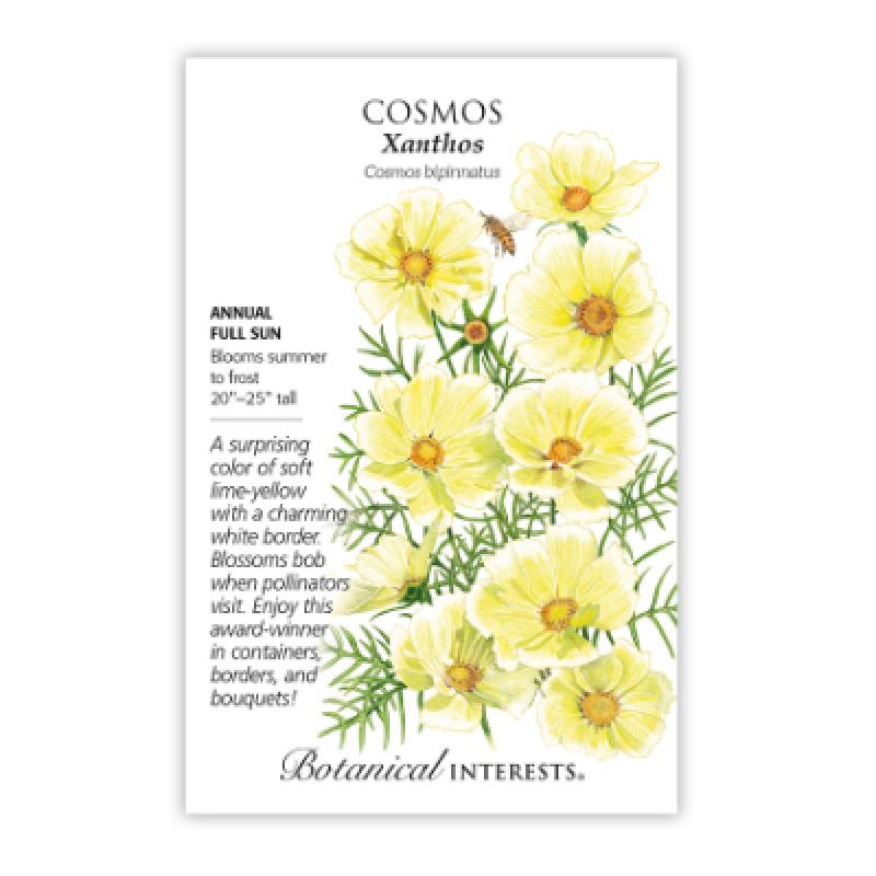 An out-of-this-world color of cosmos! This fairly new, yellow beauty (xantho means "yellow" in Greek) won the Fleuroselect Novelty, and Gold Medal awards in 2016. Not only is the color unique, the plants are early to flower, well-branched, and shorter.