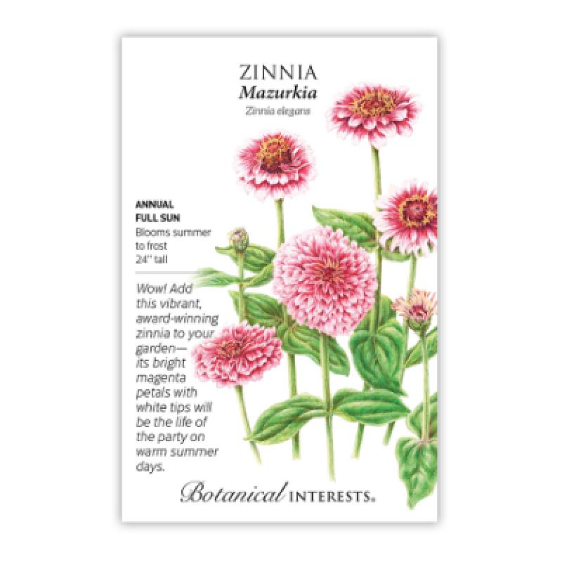 Zinnias are an easy, beautiful addition to any garden, and 'Mazurkia' is a real standout of the group. Three-inch flowers have striking, deep pink petals that appear to be dipped in white on the tips - like strawberries and whipped cream!