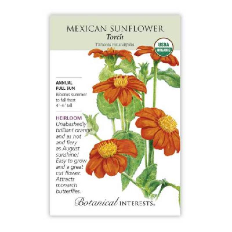 A genuine heat lover, Mexican sunflower sets the dog days of summer ablaze with sizzling 3" orange flowers. A large, multi-branching and imposing plant for the back of the border, it tolerates infertile soil, drought, and neglect.