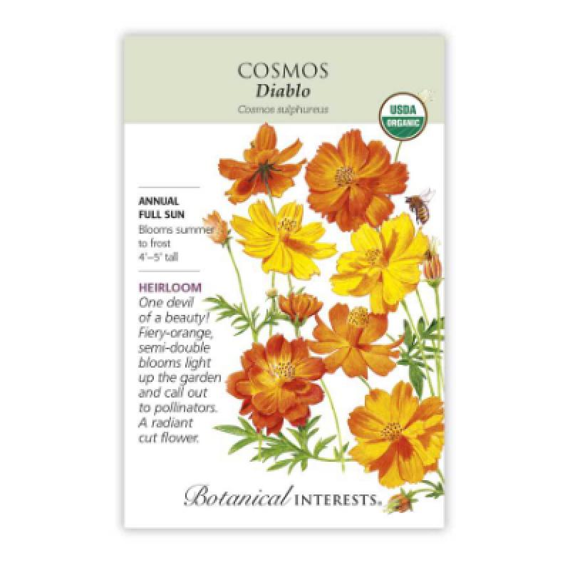 Vibrant, bold blossoms on tall stems make a big statement in the garden. Cosmos put on a big show from midsummer until first fall frost, providing pollen and nectar for bees, hummingbirds, and butterflies. Grows loads of cut flowers for your bouquets.