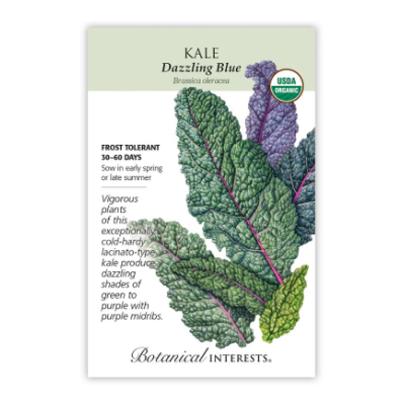 Be dazzled by the striking colors of this extra-cold-hardy kale--more cold tolerant than other lacinato types. The striking purple midrib pops against the blue-green leaves, some of which may take on more purple hues in the cool temperatures of fall.