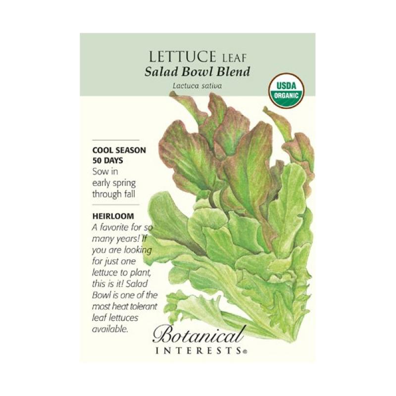 Fill your bowl with the mixed colors of Salad Bowl! This blend has it all: delicious, pretty, sweet leaves in a heat tolerant variety. The greens and reds look beautiful in salads and sandwiches. Harvest young for terrific baby greens.